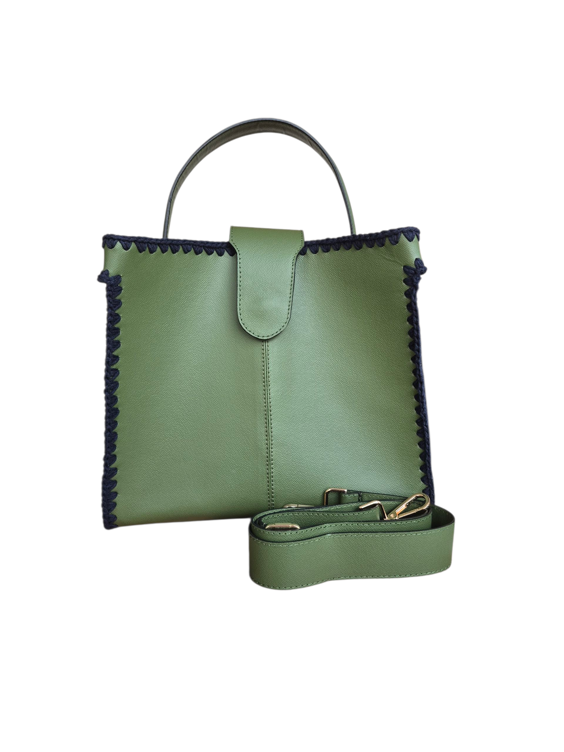 Doğallığın en şık tonu ile tasarlanan bu hakiki deri yeşil çanta, zamansız bir stilin modern yorumu. Hem elde hem de omuzda kullanılabilen çok yönlü tasarımı sayesinde günün her anına uyum sağlar. Ekstra omuz askısı ile konforu, elde taşıma seçeneğiyle ise zarafeti bir arada sunar.
